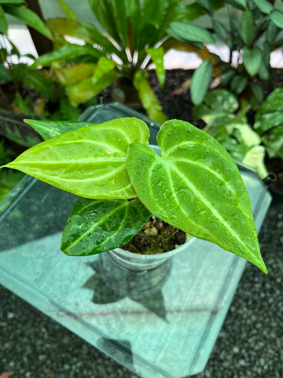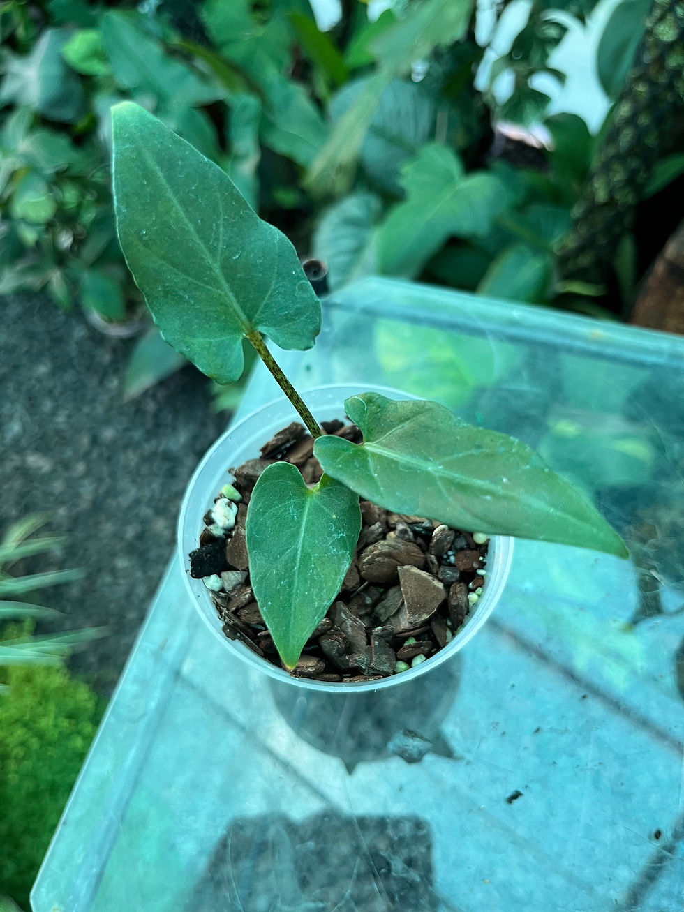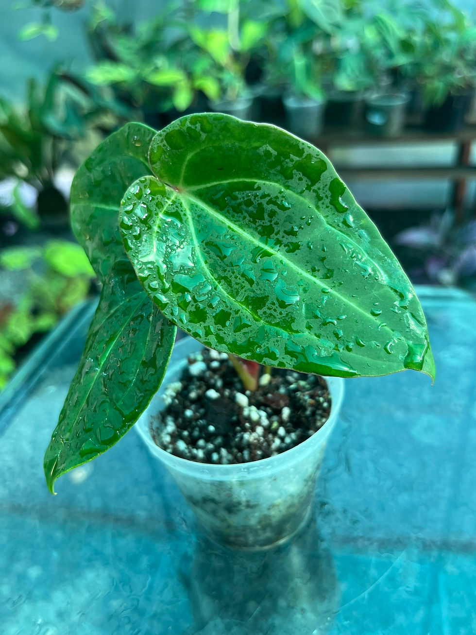 Anthurium Polyschistum is a rare and striking aroid known for its long, slender, lance-shaped leaves that cascade elegantly from its base. The glossy, deep green foliage displays a delicate, tropical texture, giving it a graceful, sculptural appearance. Its dramatic, arching leaves make it an exceptional statement plant for collectors and indoor jungle enthusiasts.